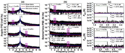 ,力分辨率可达6.6 aN,将前人的结果直接提高了近2个数量级,且后期改进方案可再提高至亚阿牛顿(sub-aN)。该成果不仅将光机械系统中光场强度耦合及探测能力的极限拓展至亚纳瓦(10-10W)尺度,更为宏观低频扭秤设立了新的性能基准,为今后的桌面式重力测量及阿牛顿级新物理探索领域开辟了新路径。